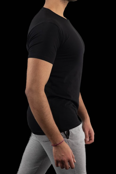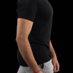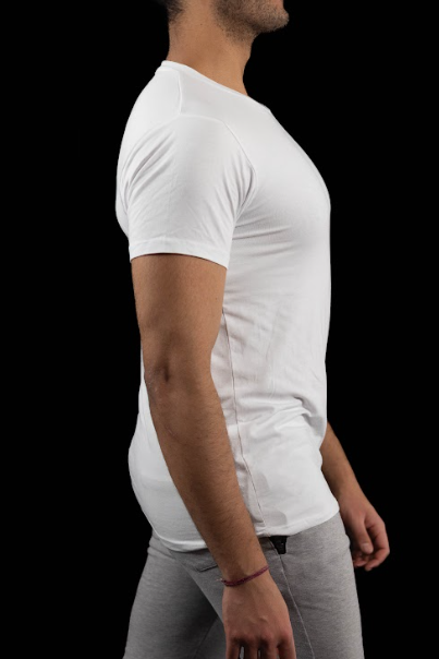 Modern long-line fit with side seams. This means it has tailored sleeves and a more structured slim fit. It will also hold its shape better after washing.